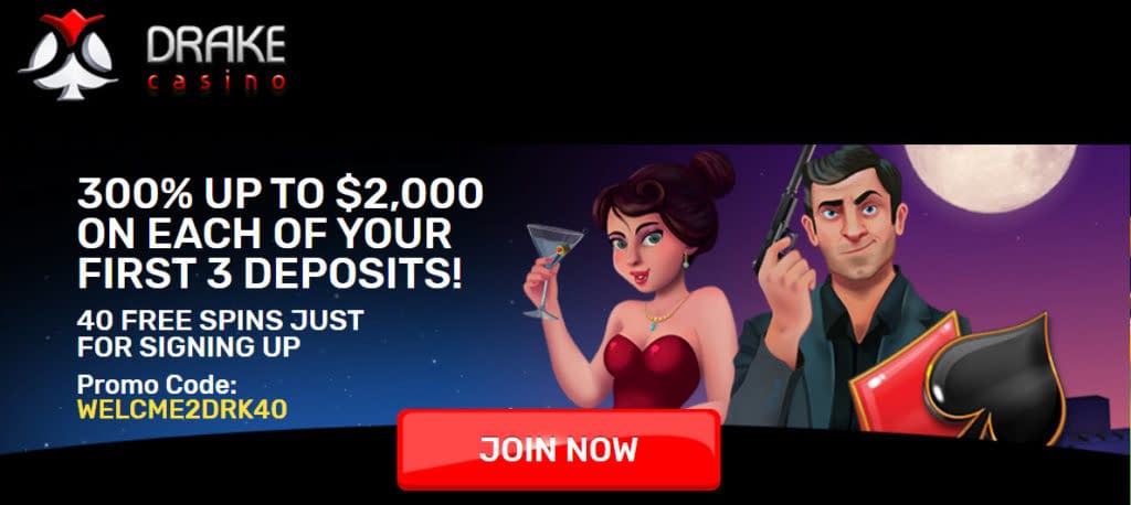 The wagering requirement for every bonus at Drake Casino is 40x the bonus plus the deposit amount before you cash out. Just like a lot of other online casinos, it is not all the wagers you make that will contribute to the requirement. You have per game restrictions and excluding slot games and games in tje slot family, the wagers only contribute from 10 – 35 percent of the wagering requirement.